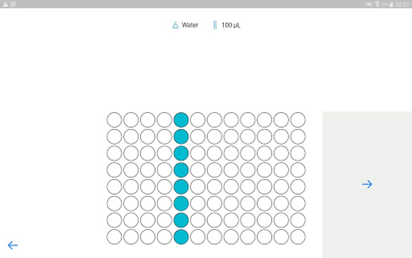 The app is made for the use in laboratories. With digitization the app revolutionizes manual pipetting jobs for assays in 96- and 384 - well plates. The microtiter plate simply needs to be placed on the screen of a tablet. Guided by light and some instructions manual pipetting virtually transforms into an automated workflow, then.