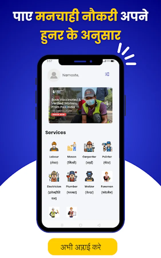 Rozgar App is exclusively designed for Blue-collar workers like masons, plumbers, labourers, electricians, painters, carpenters and more.