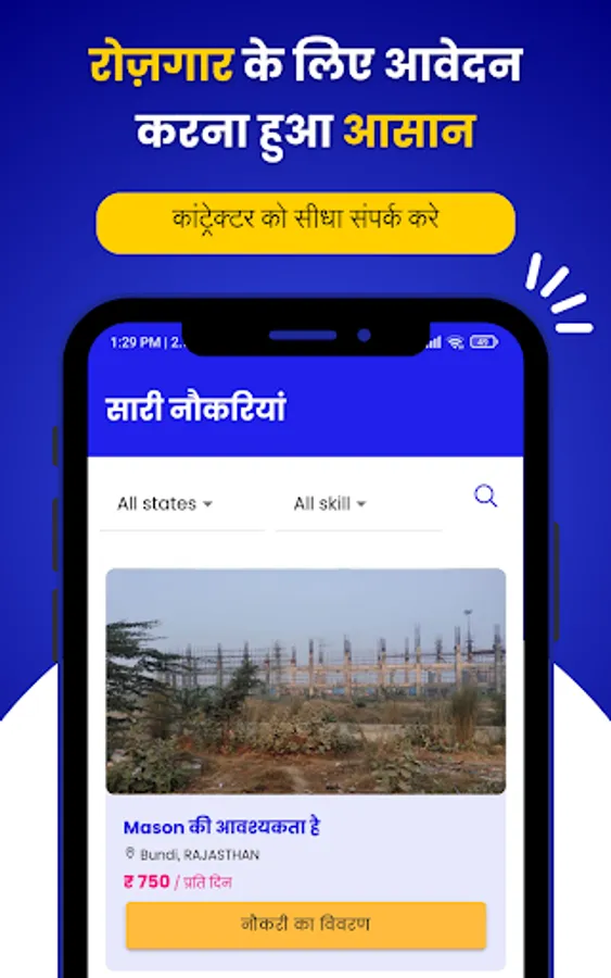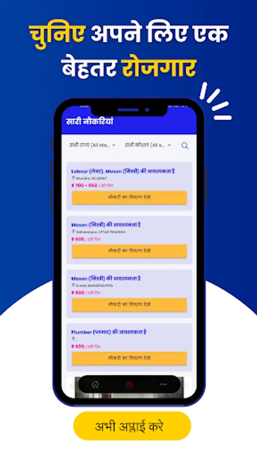 With the Rozgar App, you can effortlessly browse and apply for construction work in your area and interest, Whether you're a labourer, mason, painter, carpenter, plumber, electrician, or any other skilled worker, our app has got you covered. Simply download the app and unlock a world of job opportunities.