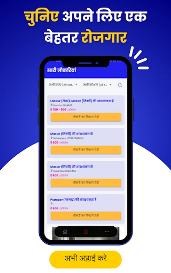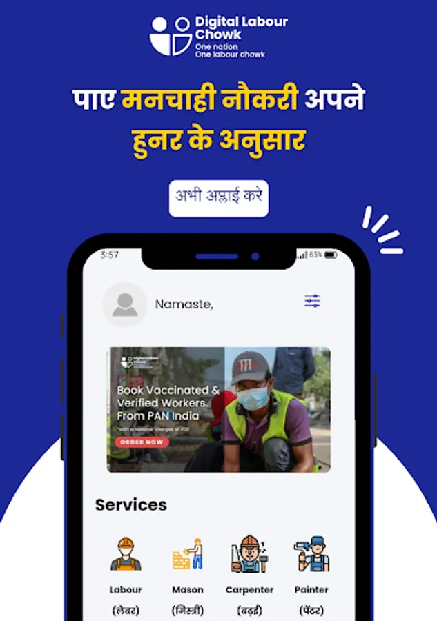 Receive real-time alerts for jobs available in your Locality. No need to spend hours searching for a job standing at Labour Chowk– the right opportunities come to you.