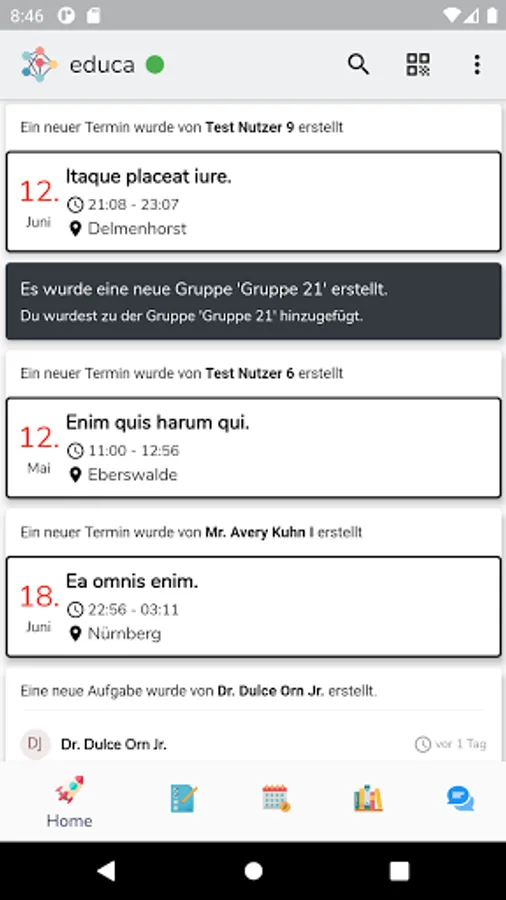 Create global or group / user-specific announcements. Each role sees the messages relevant to them and can react to them. You can also use the newsfeed for voting.