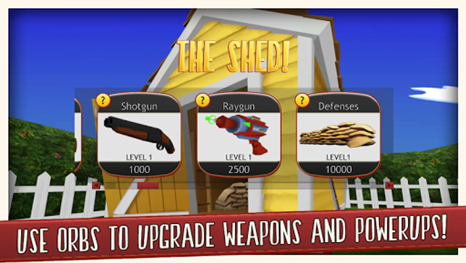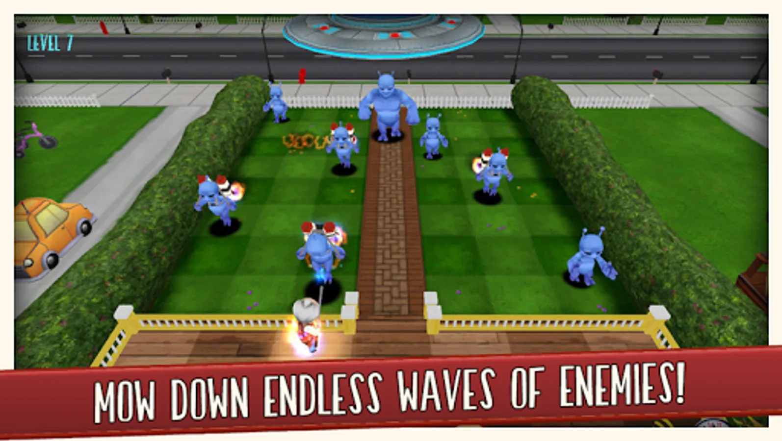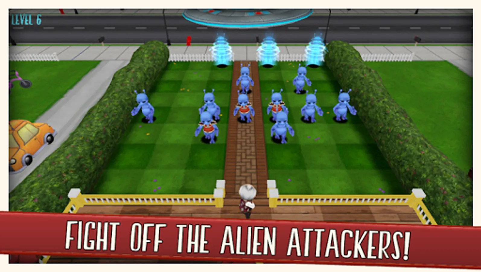 Collect valuable alien orbs to upgrade your weaponry. Use ‘Cane Time’, ‘Infuriate’, and ‘Soundwave’ power-ups to gain the upper hand when all seems lost. The longer Murray holds the lawn, the stronger those aliens get. But there is plenty of firepower waiting for you to try out in The Shed.