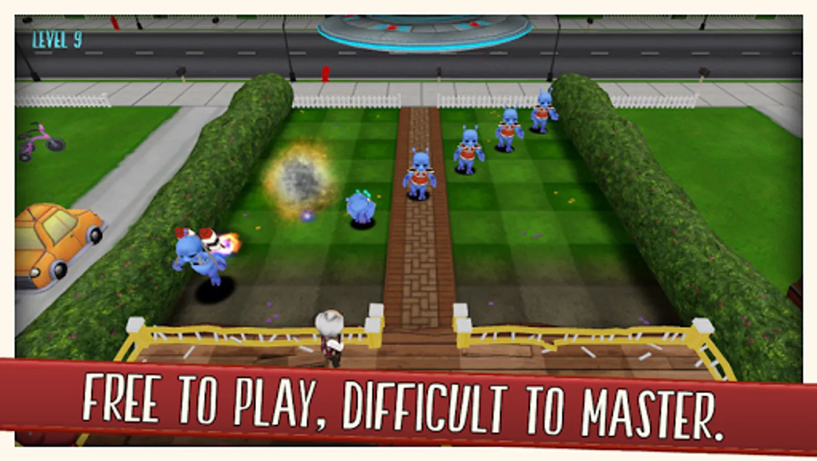 First contact didn't go as planned, when aliens woke Murray Mendelson up from him afternoon nap. Pulling the trigger first has drawn Murray in to full scale war with these alien visitors, and they’ll stop at nothing to destroy him. Armed with his musket and inconsolable rage, Murray must defend his home against all odds. Why are the aliens only attacking this one house? Who knows?! Shoot first and ask questions later in this endless fast paced arcade shooter, and keep those pesky aliens off of Murray's perfectly manicured lawn!