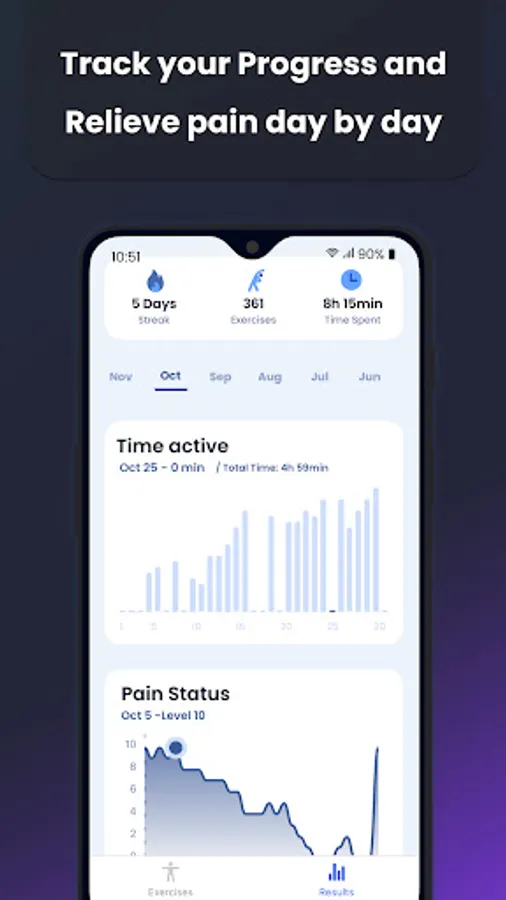 📈 Feedbacks and Activity History: View your completion status and pain & and mobility progress. Keep track of your steps & daily amount of water & challenge completion status.