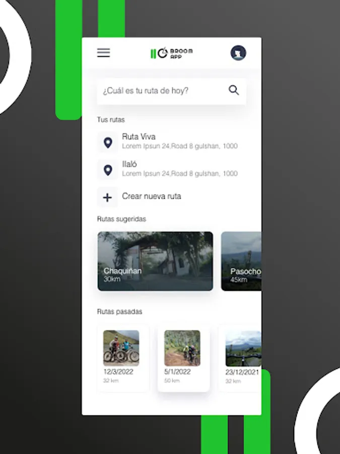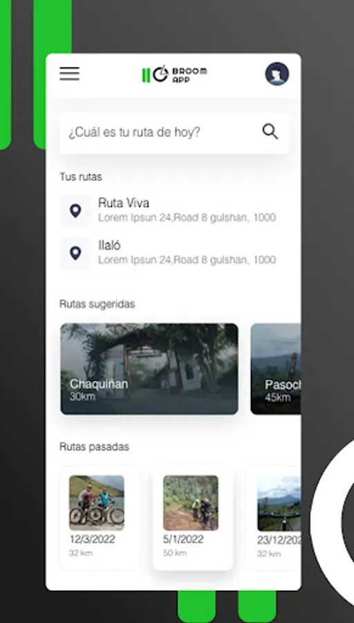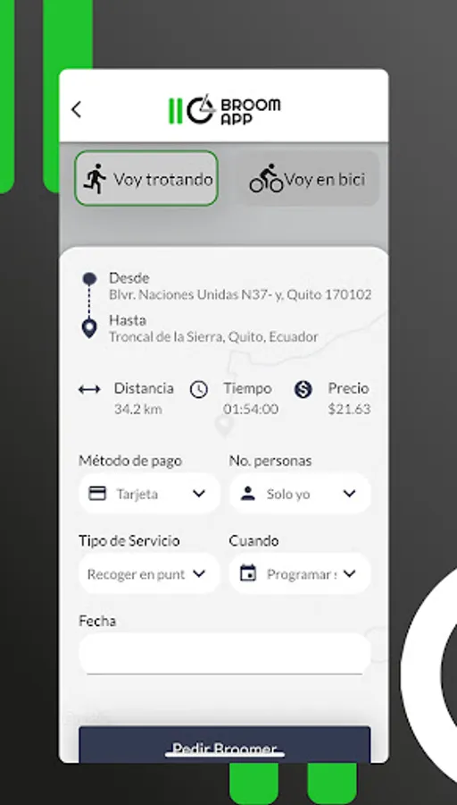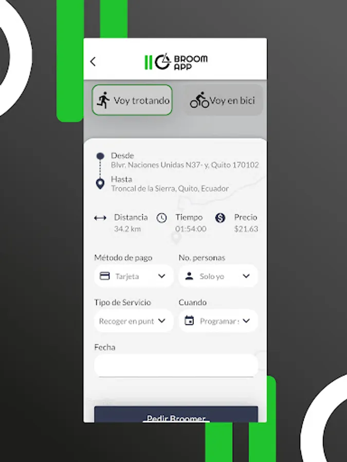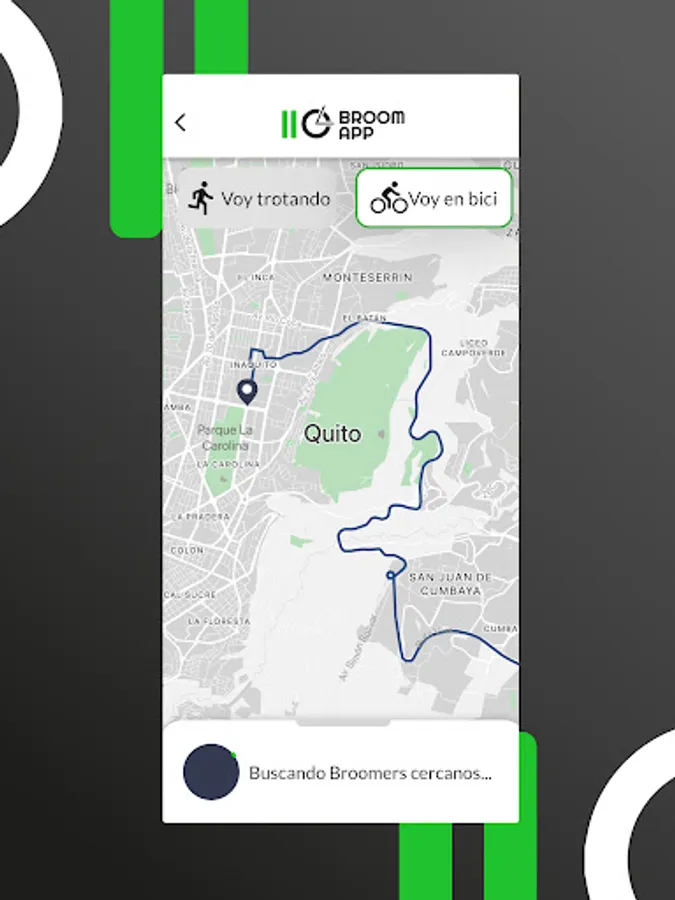 Broom App for Carro escoba is the application that the cyclist will use to request the road accompaniment service and road safety in their training. Safe transfer of bicycles to their departure and return points.
