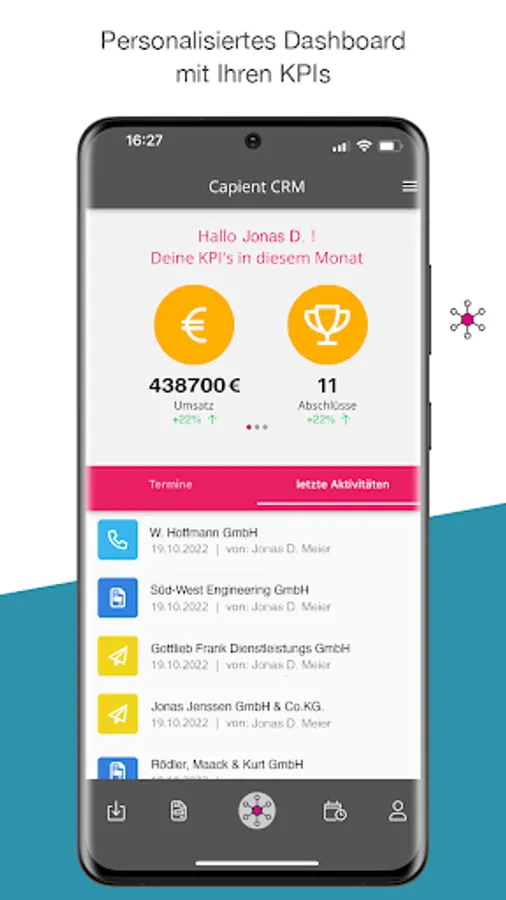 With the capient CRM app, you always have your current data with you.
