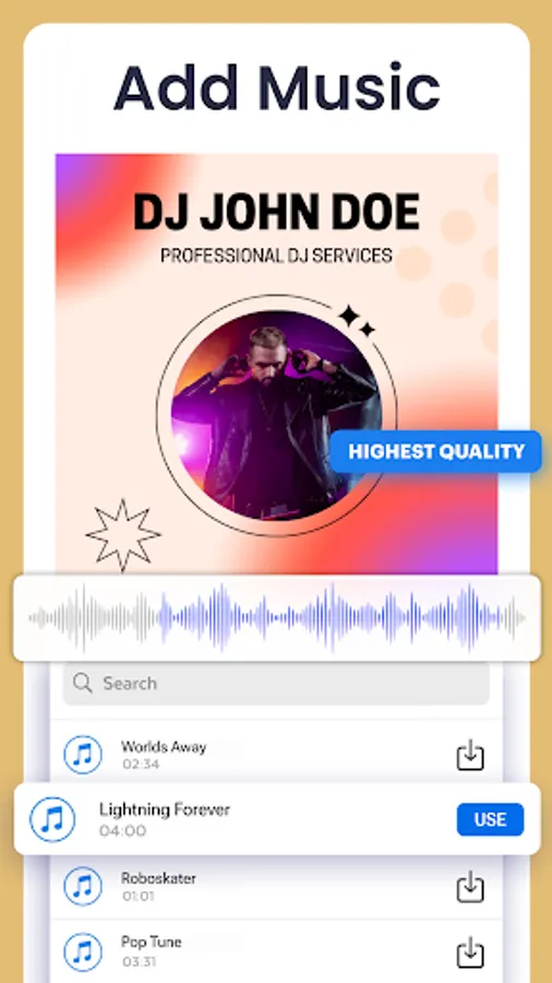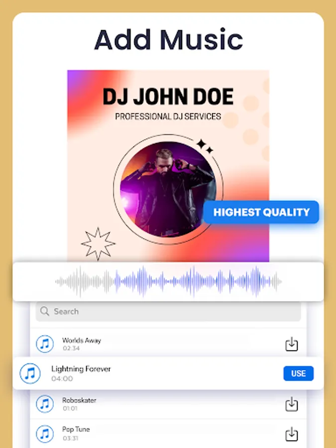 3. Audio Enhancement: Add your own music or select from our gallery of music tracks to set the ideal mood for your marketing presentation.