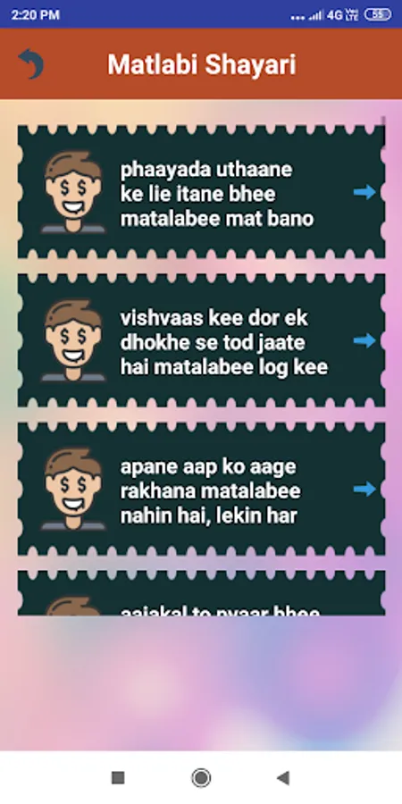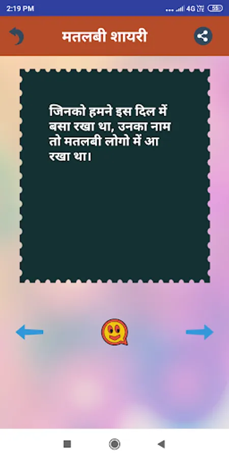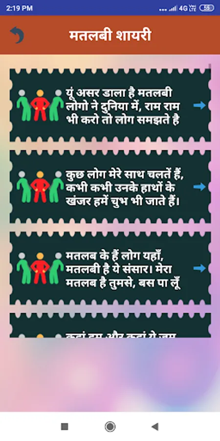One of the best Shayari App of All time. This app contains largest collection of Matlabi Shayari, Hindi Shayari and Matlabi Status.