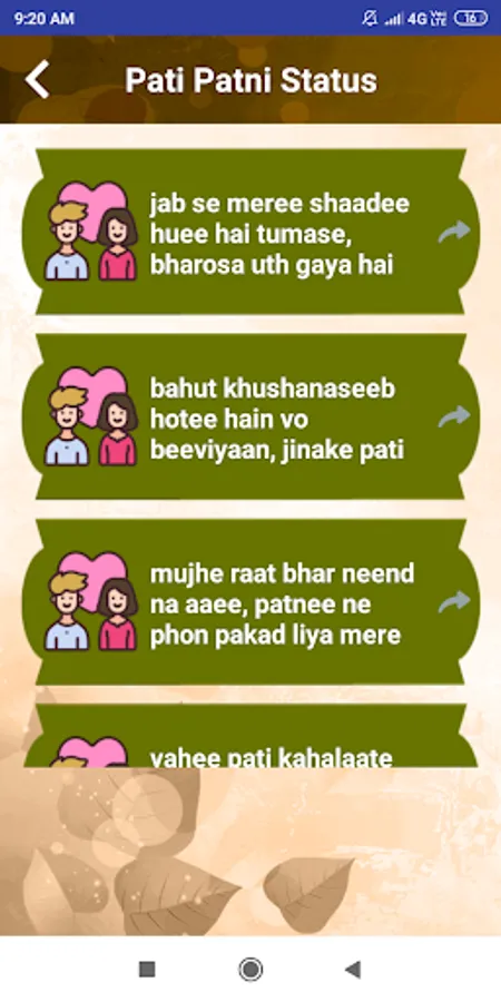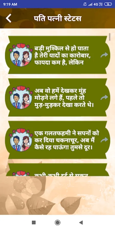 Pati Patni Status lets you explain sentiments in all their forms through rhythmic words.