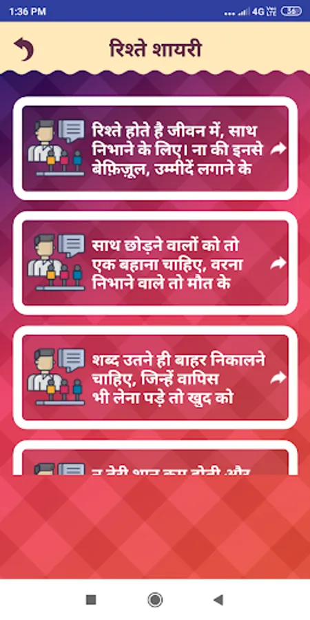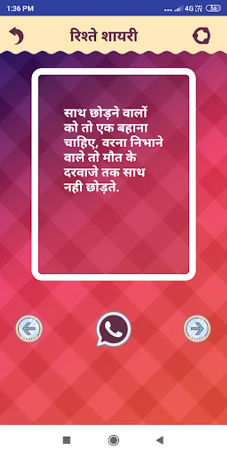 One of the best Shayari App of All time. This app contains largest collection of Rishte Shayari, Hindi Shayari and Rishte Status.