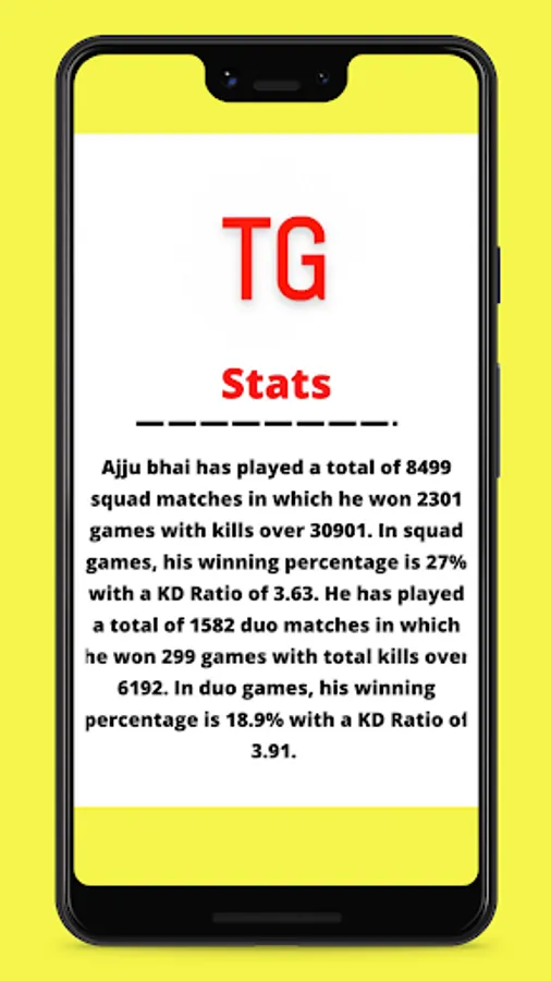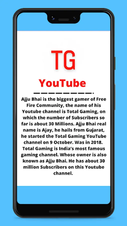 Basically this app provide you full biography of Total gaming. May be this result not be accurate and all data will be collected from internet.