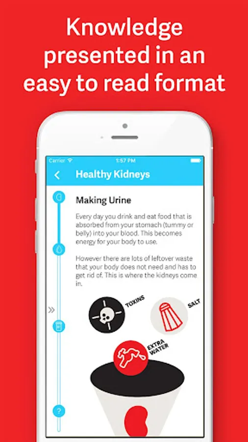 This app has been developed by Kidney Health Australia to both educate and support those who are diagnosed with early chronic kidney disease. Educational information about detecting kidney disease and looking after yourself with kidney disease are the key features.