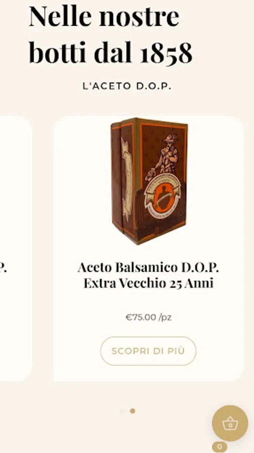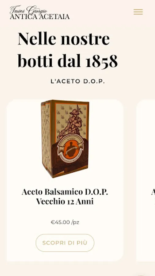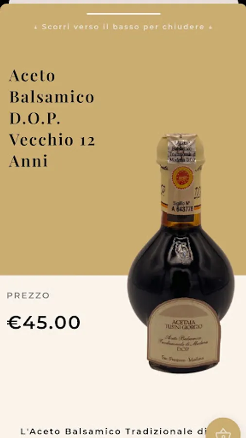 Application dedicated to the shop of the products of the Antica Acetaia Tusini Giorgio di San Prospero (Modena).