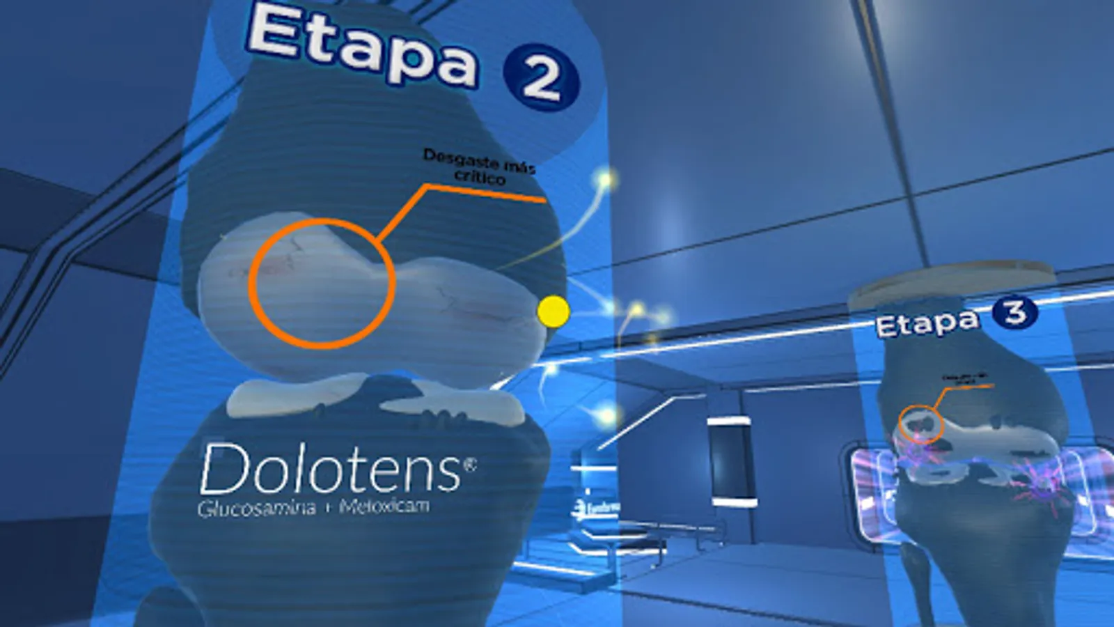 This application shows the 4 stages of Osteoarthrosis in Virtual Reality so that the patient can understand and perceive the progressive effect of the disease in an experiential way.