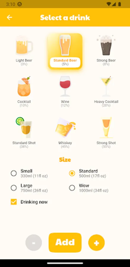 Input your consumed drinks to access precise calculations: