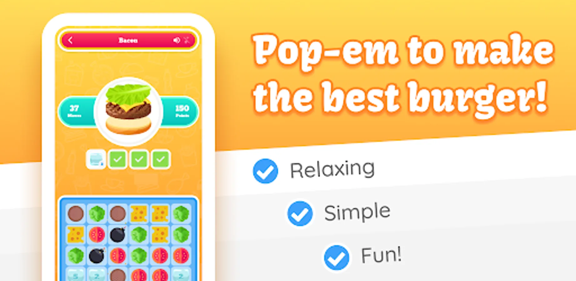 Do you like food, colorful graphics and poping things up? Try our game to relax, pass time and have fun.