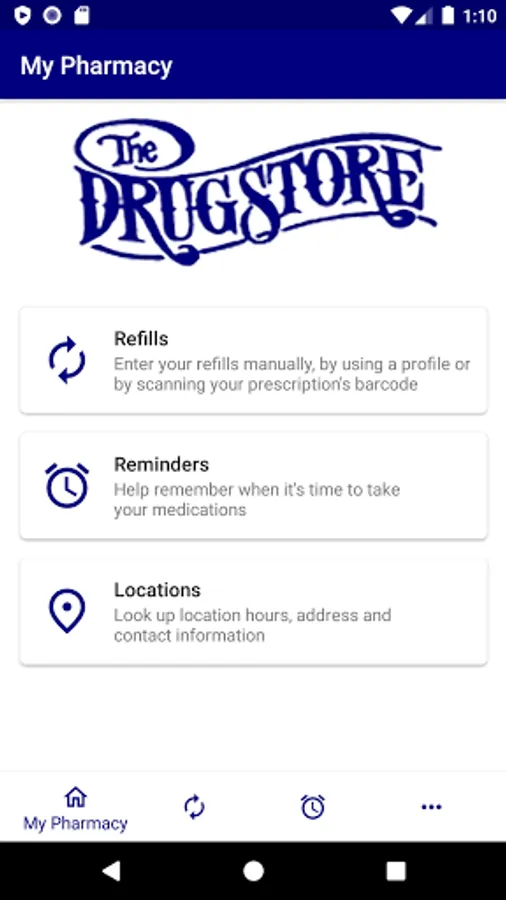 The The Drug Store app allows you and your family to securely communicate with your local pharmacy. Refill your prescriptions with one click, get refill reminders, get discounts at your local pharmacy, get savings on brand drugs and access Pharmacist written pages that help you understand your condition or medications.
