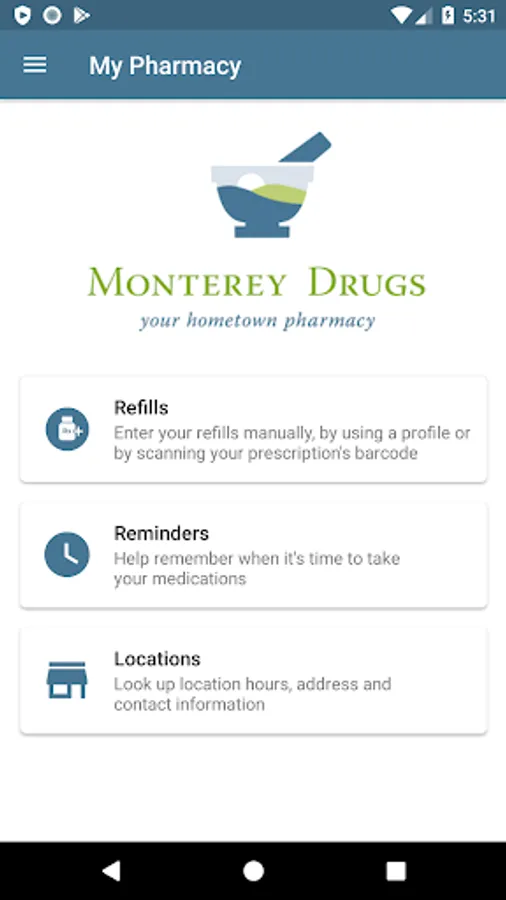The Monterey Drugs app allows you and your family to securely communicate with your local pharmacy. Refill your prescriptions with one click, get refill reminders, get discounts at your local pharmacy, get savings on brand drugs and access Pharmacist written pages that help you understand your condition or medications.