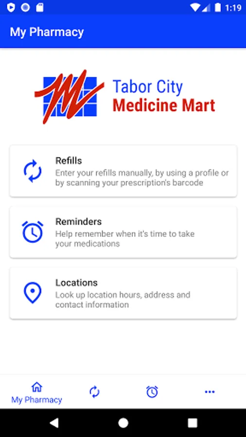 The Tabor City Medicine Mart app allows you and your family to securely communicate with your local pharmacy. Refill your prescriptions with one click, get refill reminders, get discounts at your local pharmacy, get savings on brand drugs and access Pharmacist written pages that help you understand your condition or medications.