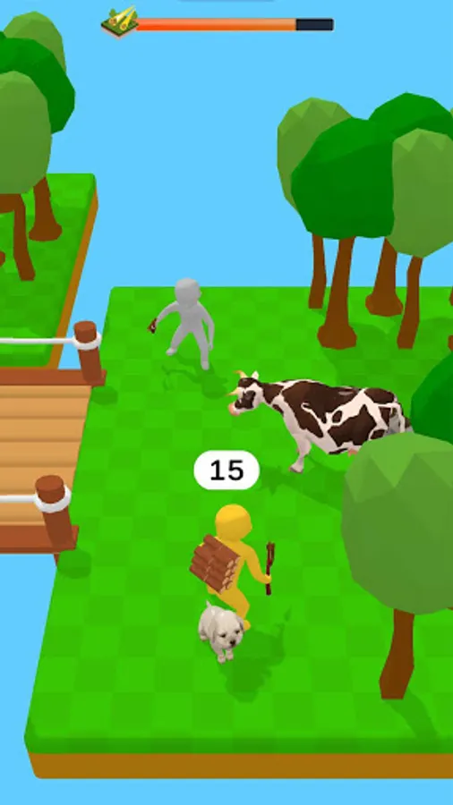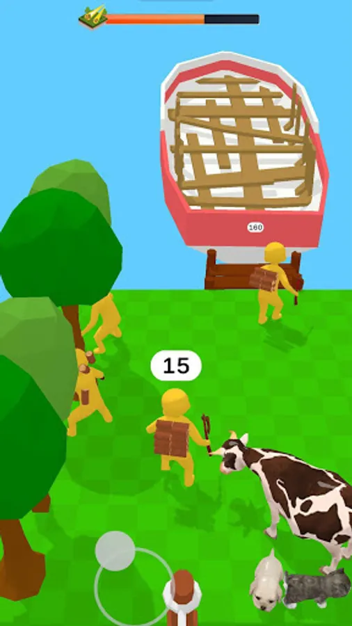 Collect the animals and other people from the way to join you in wood cutting. So collect as much people and animals as you can so that you can save more and more people before the volcano erupts
