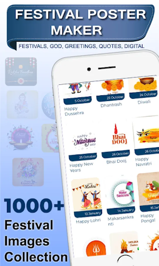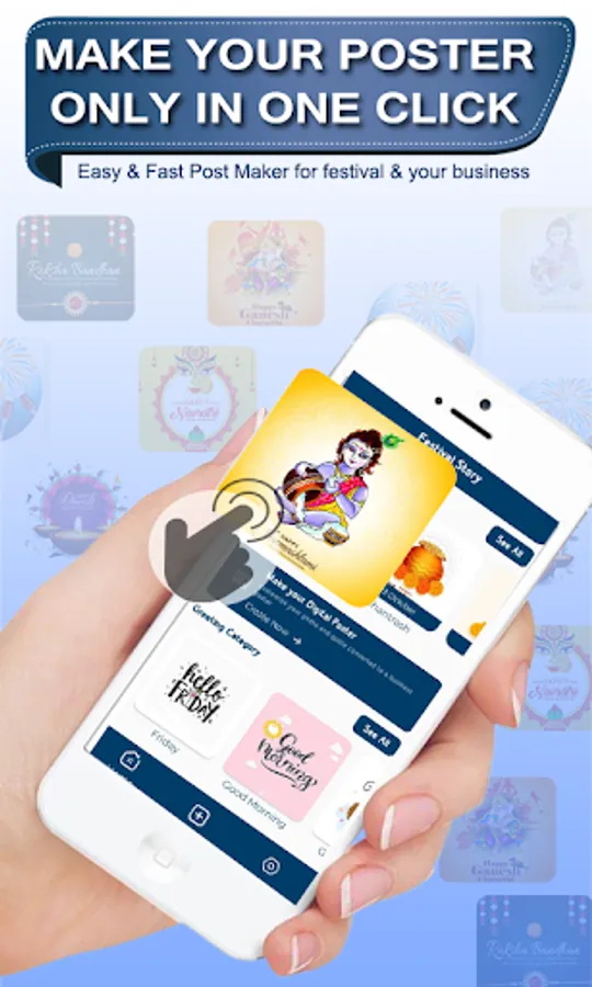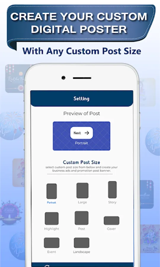 No more effort and specific skills required to design creative festival poster maker, festival poster maker with photo, festival poster maker with name and image using festival post for business free, Brand poster. select any Digital Poster frame or photo template which you liked for making festival greetings and promotions for your businesses. Write the text in a variety of Fonts, and add Stickers on HD backgrounds. Lock contents you don't wanna move or unlock to adjust their place. Share image app brings you the best collection of All festival wishes images and daily greetings messages for all festivals. We've designed creative festival poster templates and it is editable through this brand poster maker, festival post maker app. Branding Post, Marketing Post Maker is the Best brand poster maker app to create marketing festival images for your business or company.