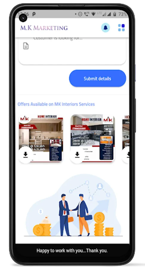 That is the main aim of this application. The customer and End employees came to one place that is MK Marketers.