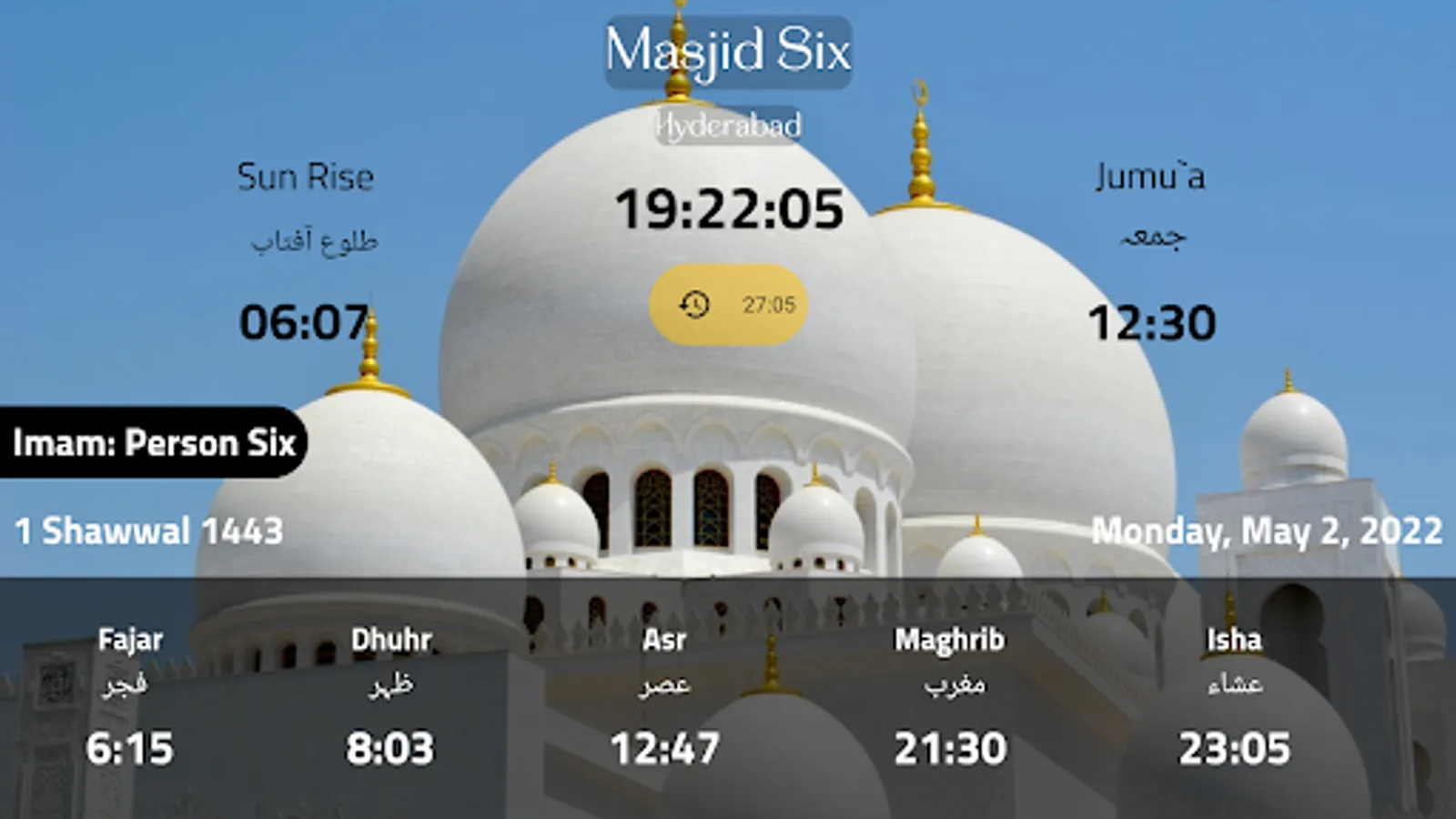Tadhkira is a advanced application for masajid and it's visitors showing the exact time for every namaaz (salah) ..