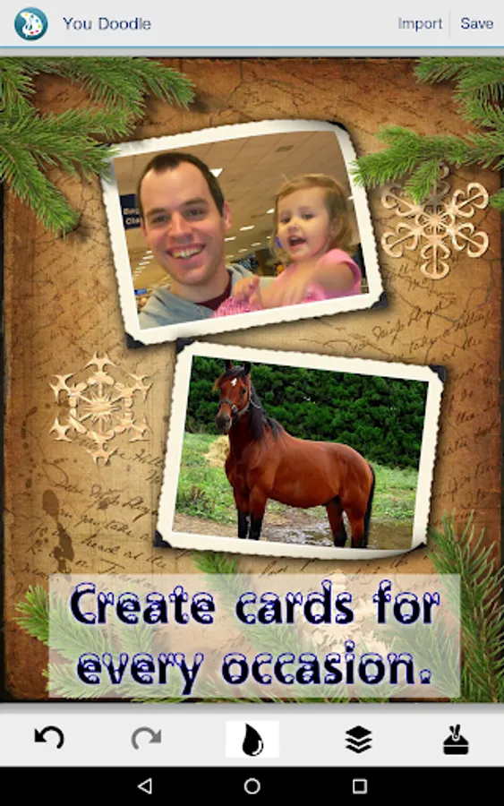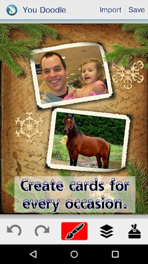 You Doodle is the best app on Android to create art and draw on photos and draw on pictures. Doodling on a friend, or marking up a picture or adding text has never been easier. With it's powerful text tool and simple brush tool, you can draw on photos and add text quickly and easily.