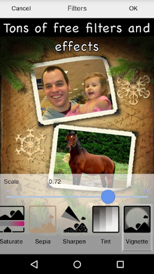 - Add text to photos with fill, outline, glow / shadow, opacity, background and border