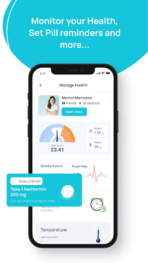 Health Records: Keep track of your medical history, test results, and vaccination records in one secure place. Retrieve and share your health records whenever needed, ensuring comprehensive and informed care.