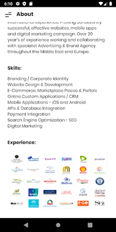 A senior-level Digital Consultant with international experience. Proving consistently successful, effective websites, mobile apps and digital marketing campaign. Over 20 year’s of experience working and collaborating with specialist Advertising & Brand Agency throughout the Middle East and Europe.