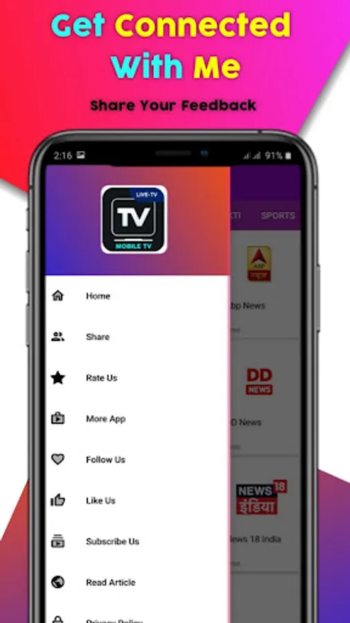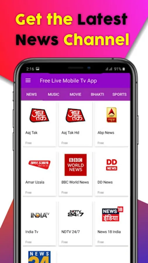 It Contains All The latest Channel of Free Live Tv And News In hindi And All major Language