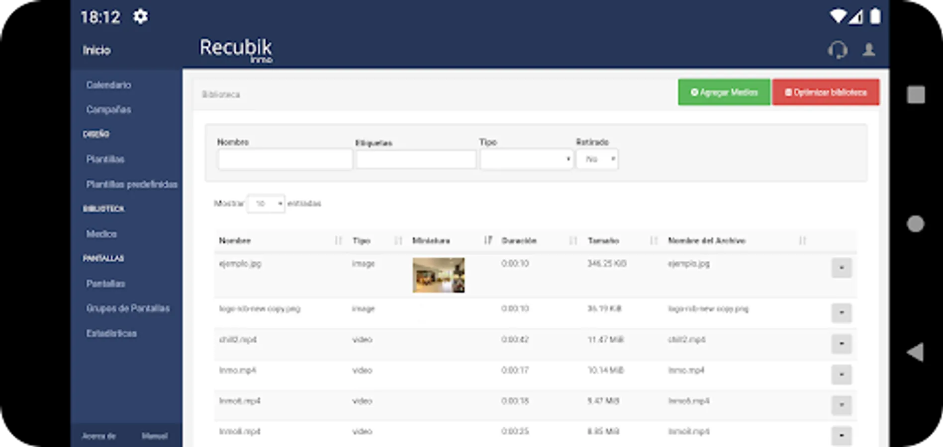 Telephone application of the Recubik Inmo tool, a Digital Signage solution specially designed for the Real Estate sector. Properties can be managed in a dynamic and attractive way, in addition to the management of corporate content and programming grid.