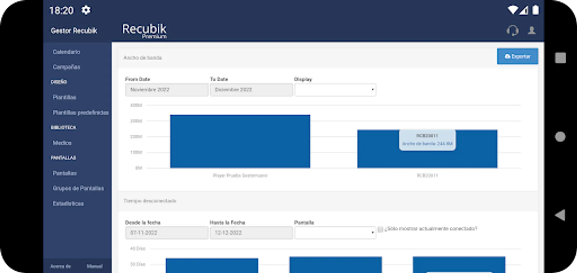 Telephone application of the Recubik Premium tool, a solution for sectors that need more advanced software around remote content management.