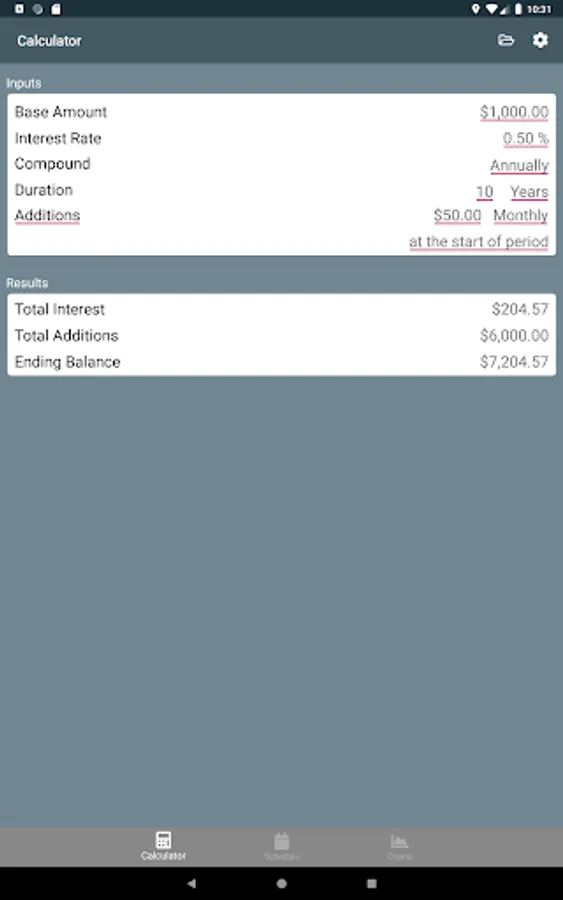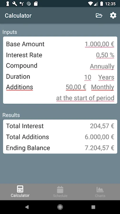 With this app, you can easily calculate interest and compound interest, how fast a particular