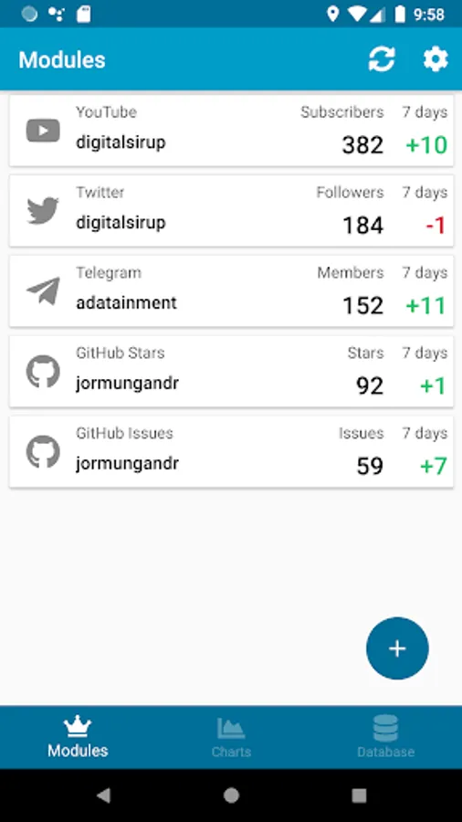 Use Ego to either boost your ego or to track community growth of your social media. Simply add modules you like to track and the app gathers statistics for you. Every 6 hours it downloads the stats you'd like to track.