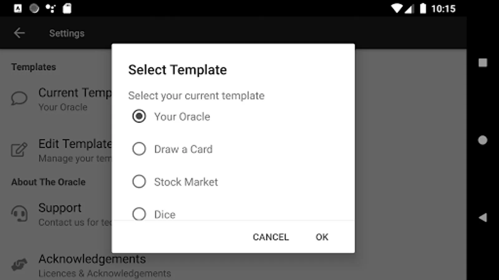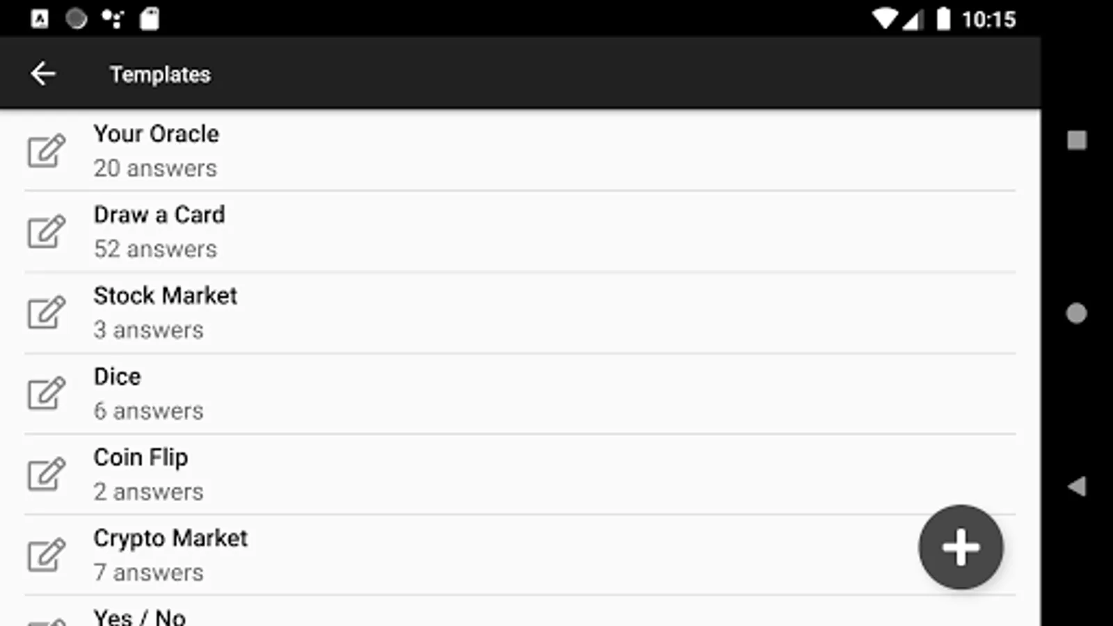 You can choose from many built-in categories like "draw a card", "stock market", "lotto numbers", "dice simulation", "coin flip", or "who will do something" (which is great for party games, just enter the names of your friends) or you can create your own category.