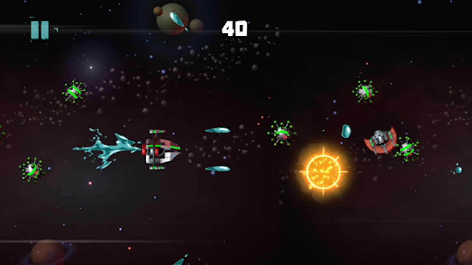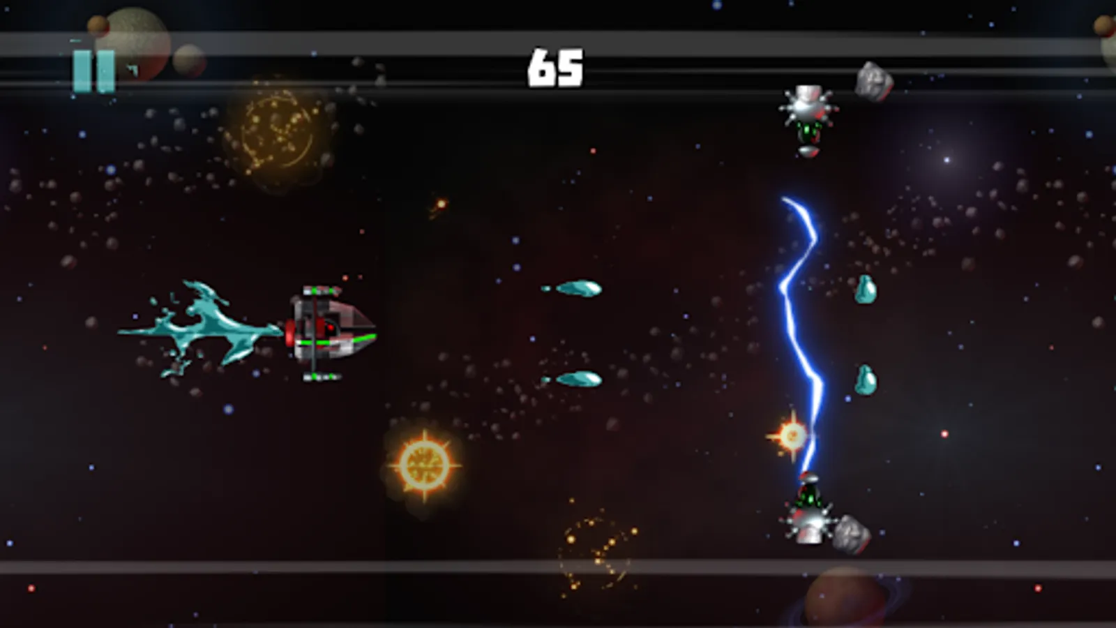 A shooting game where you'll be traveling the galaxy and will need to avoid obstacles on your way, playing as the spaceship.