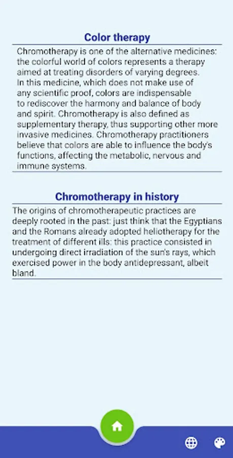 Chromotherapy is one of the alternative medicines: the colorful world of colors represents a therapy aimed at treating disorders of varying degrees. In this "medicine", which does not make use of any scientific proof, colors are indispensable to rediscover the harmony and balance of body and spirit. Chromotherapy is also defined as supplementary therapy, thus supporting other more invasive medicines. Chromotherapy practitioners believe that colors are able to influence the body's functions, affecting the metabolic, nervous and immune systems.