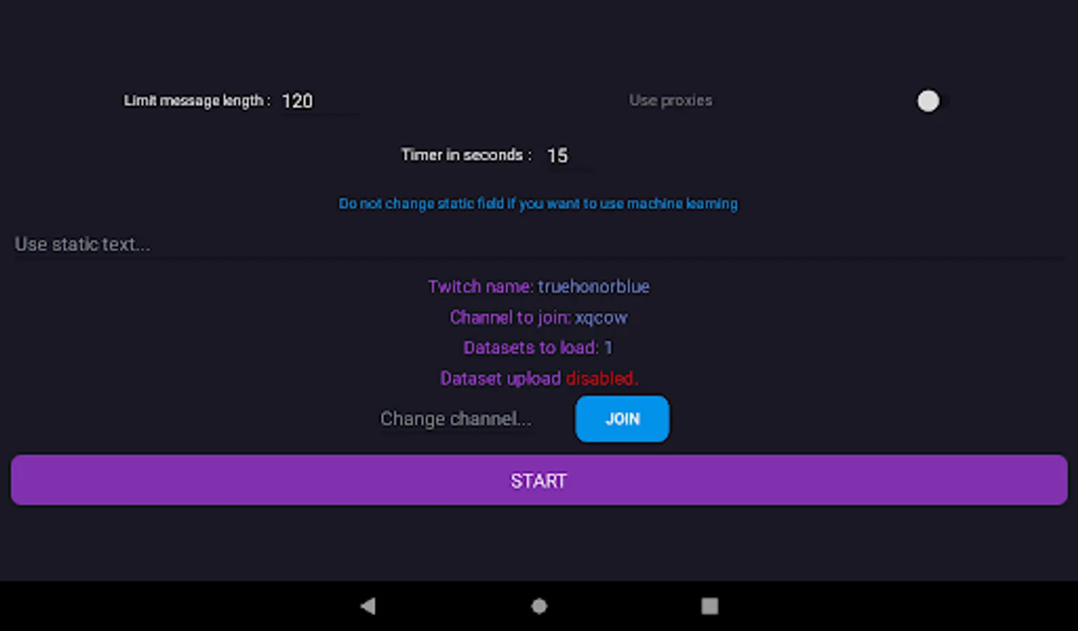 TwitchBot is official http://fuza.digital/ app for creating custom chat bots with machine learning algorithms.
