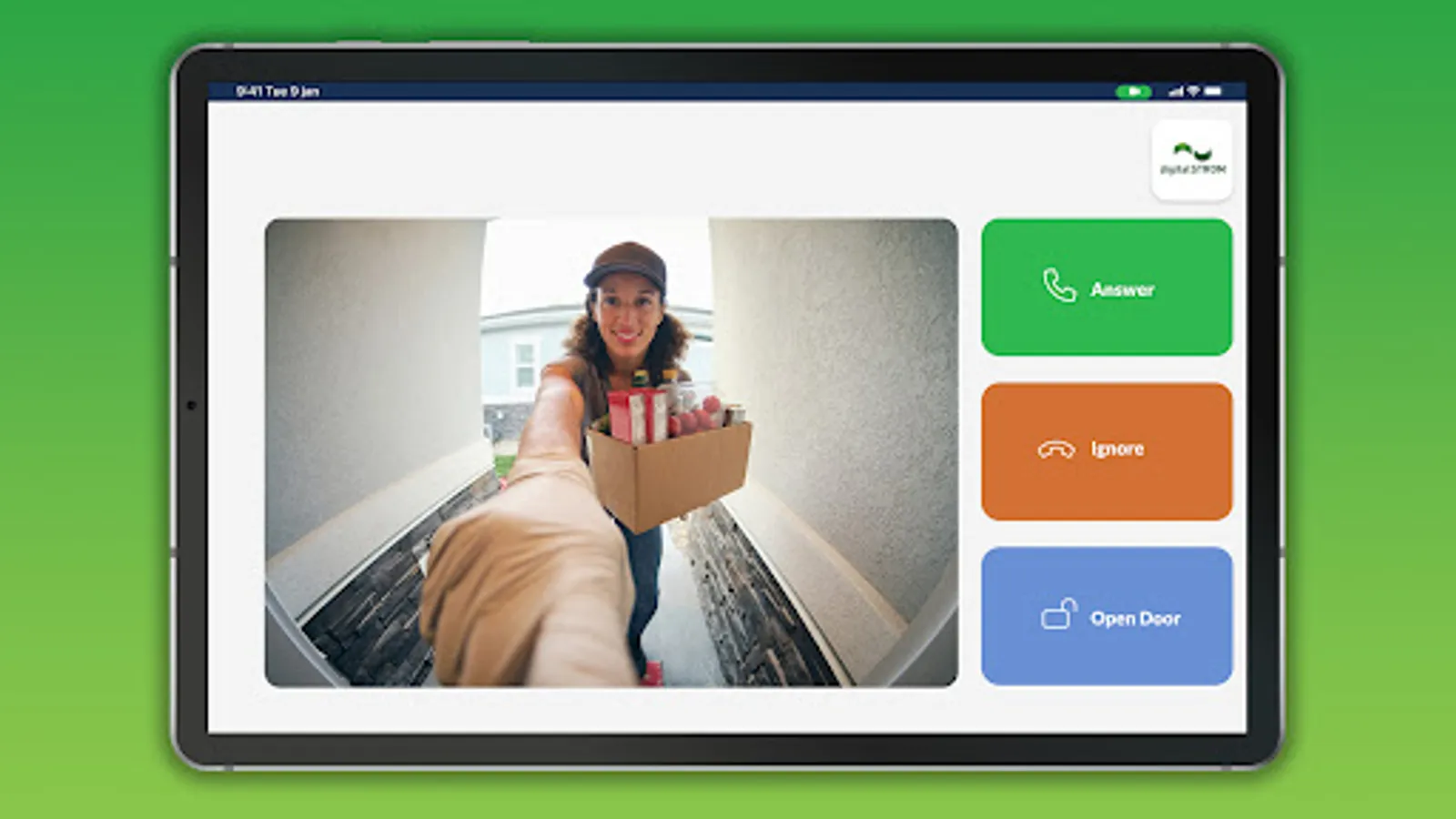 dS Access provides the resident with the ability to open their entrance remotely, view the connected camera and receive and answer visitor calls remotely from their smartphone or inhome touch display.
