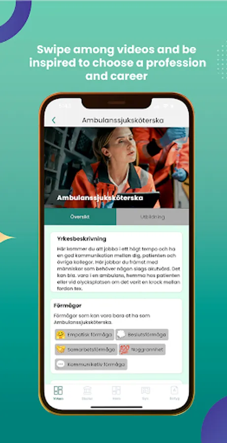 Digital SYV content is validated and targeted to those who want to increase their knowledge of the various choices available before upper secondary school. In the app, we have collected a lot of information that is intertwined and presented in a creative and dynamic way. Digital SYV offers a personification that makes the choice of upper secondary school easier, more fun and exciting by inspiring the choice of profession and career. Digital SYV can be used by all students in primary school and is suitable for parents as well as guidance counselors who want to help the child's choice of education and profession.
