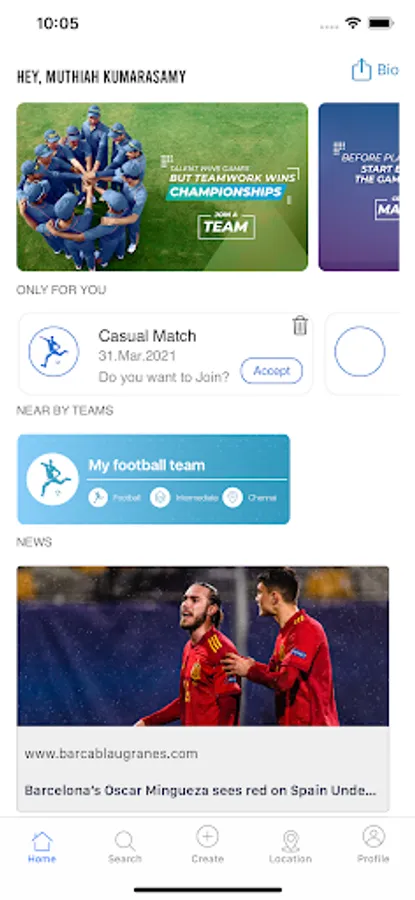2. Request Team: Apply easily to near by teams with your bio, right from the app