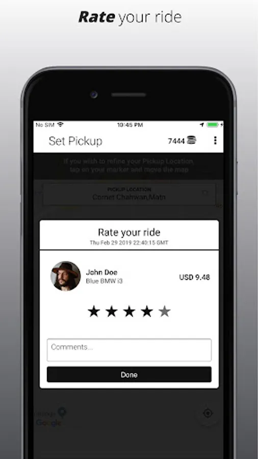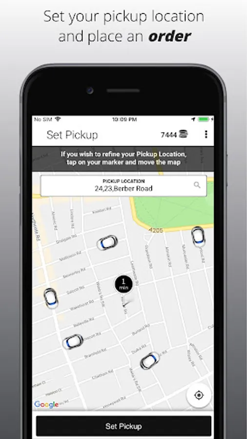 Specify your pickup location then write down your destination and click on "Find me a Cab" to send your request to the nearest drivers.