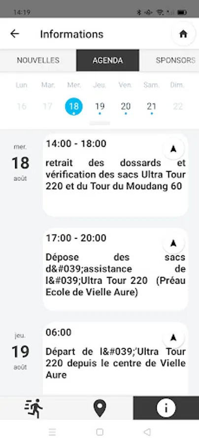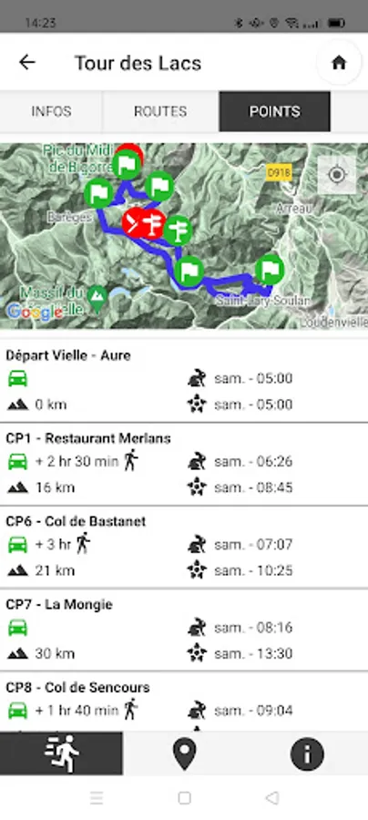 Waypoints: location, km point. , content of supplies, first passage, time barrier