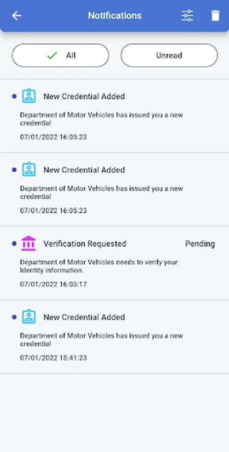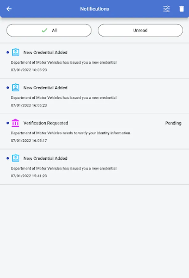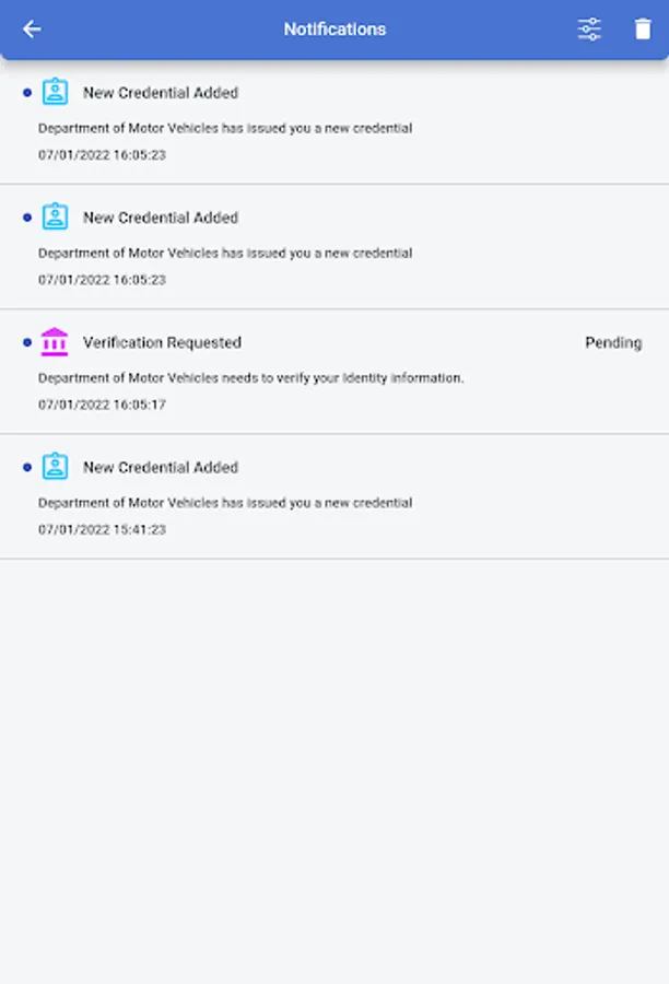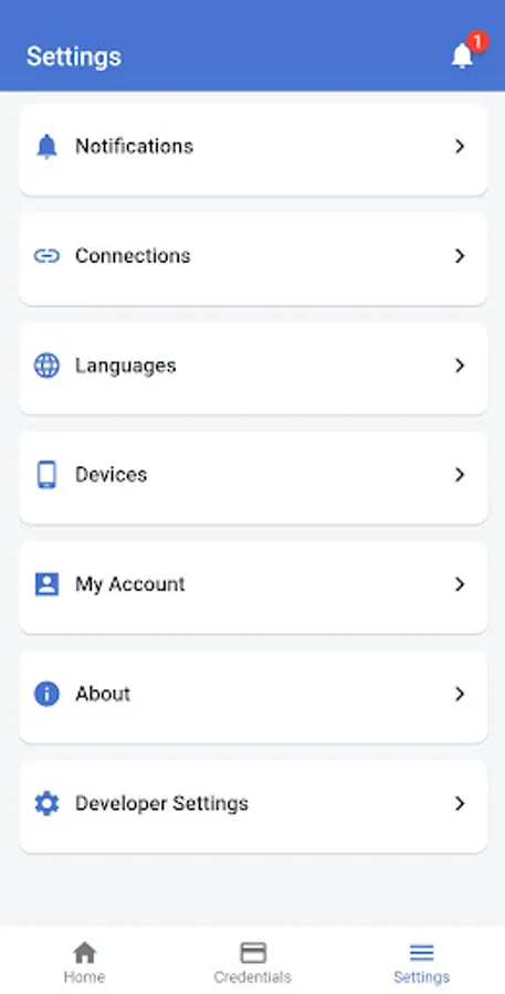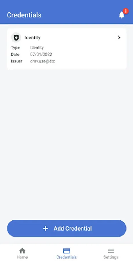 2. Credentials Tab: Allows users to get a list of issued credentials.