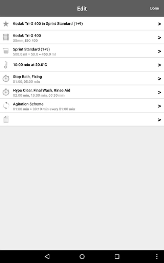Take your black and white photography to another level and get consistent results with any film or developer. Audio agitation reminders will help you never make a processing mistake again! Modify time and temperature, automatically calculate volumes, share and store your own data for ease-of-use. The Massive Dev Chart Timer is used by thousands of photo enthusiasts, students and professionals worldwide.