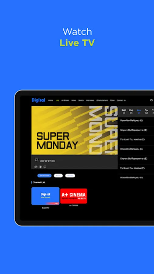 Instantly watch over 50 global channels covering genres of sports, documentaries, entertainment, live music, travel, children's cartoons, a variety of 24/7 movies and on-demand series. Watch daily, any time of the day, on your phone or TV without missing a second of your shows or movies.
