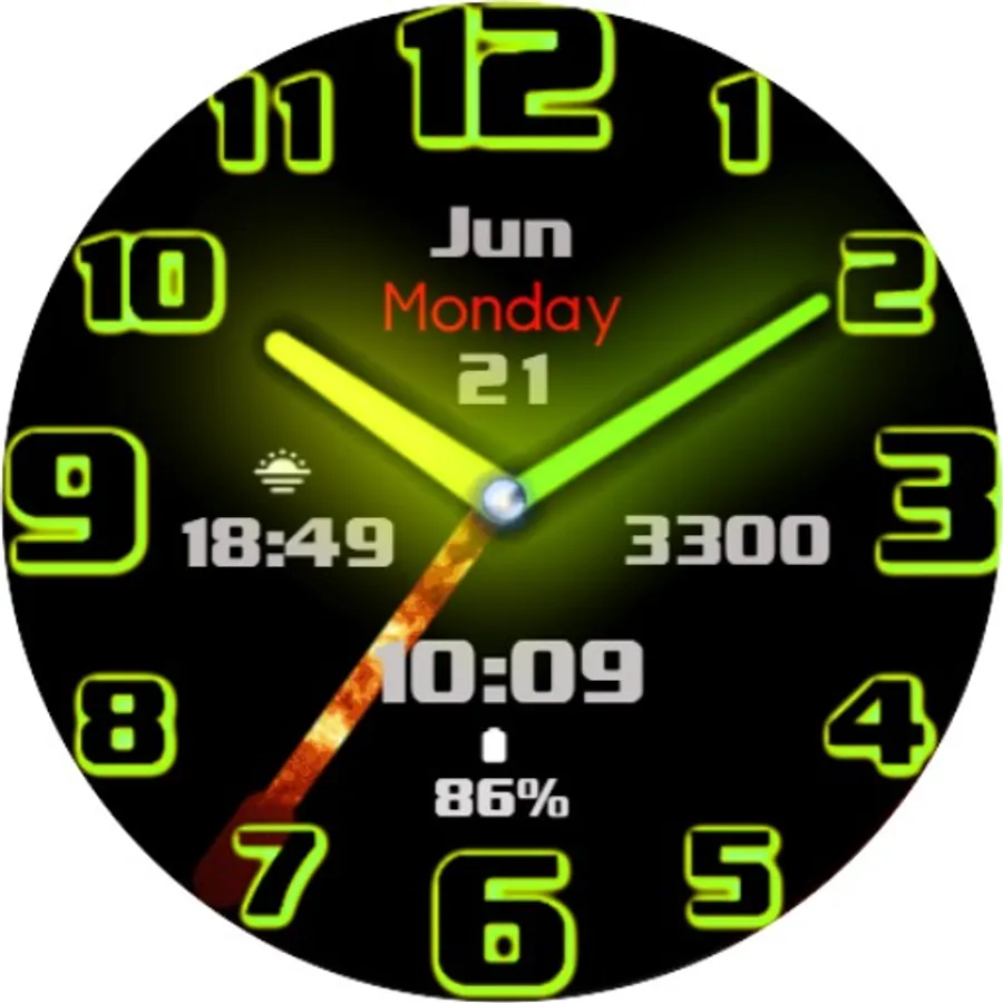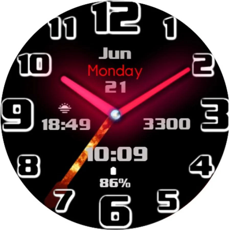 Beautiful Neon Analog watch-face with Fire-ing second hand animation & color options.