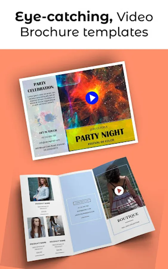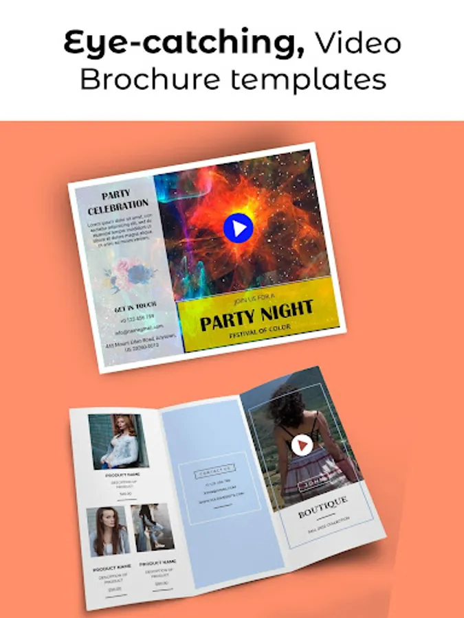 Create a video brochure, pamphlets, restaurant menu, flyers, leaflets for your product. Free, quick & easy to use. No design skills are needed.